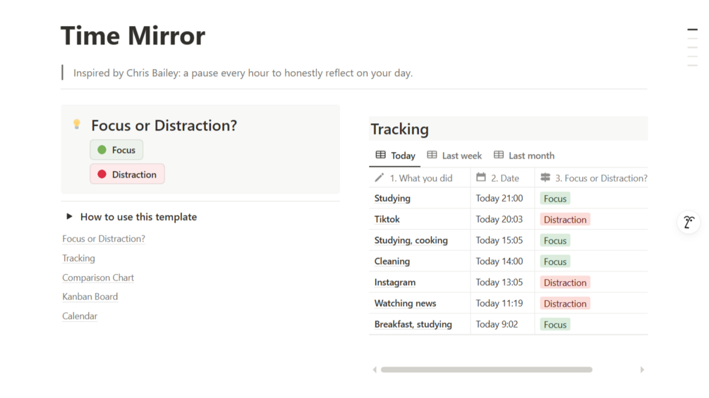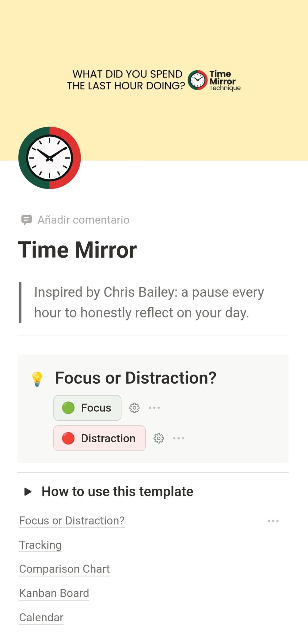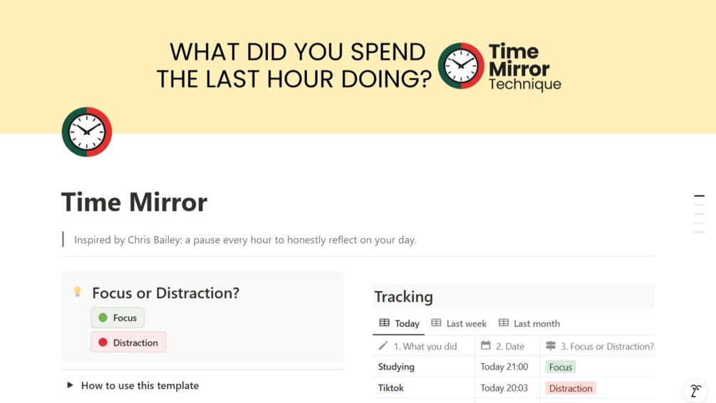 You will get the Time Mirror Template: two buttons, one honest question, and a rhythm that changes everything.