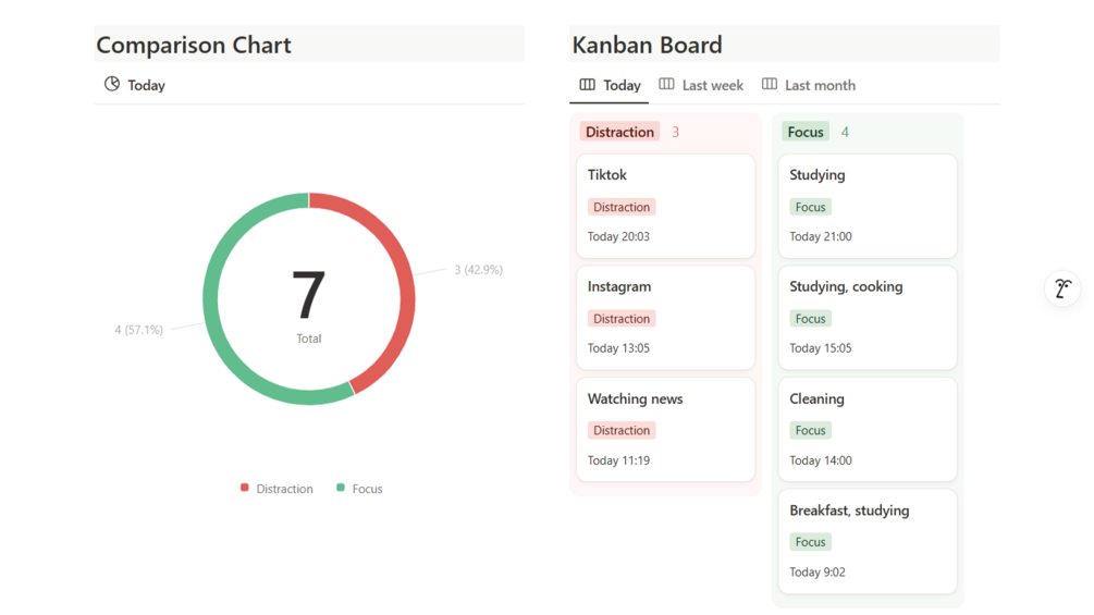 - Built-in color-coded system: Green = Focus, Red = Distraction